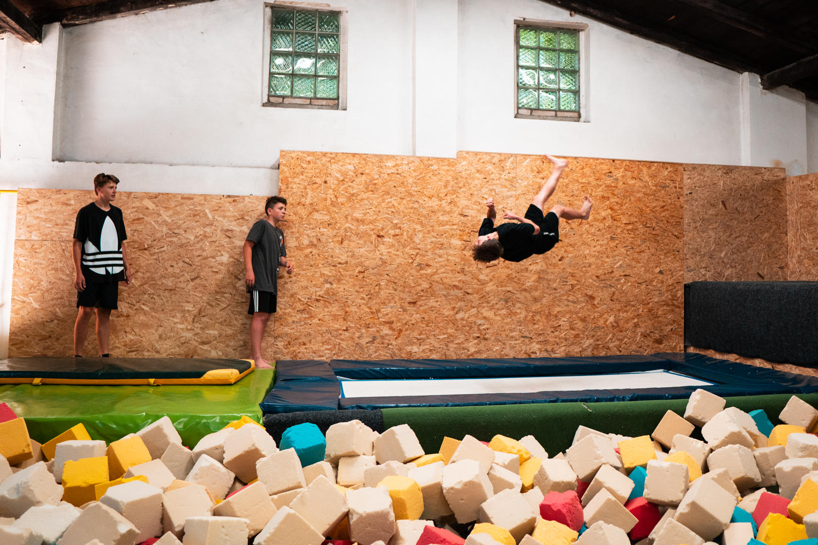 U nás budeš padat vždy do měkkého! Máme obrovskou jámu plnou molitanových kostek, kde si můžeš zkusit bezpečně ty nejrůznější triky. Jáma je dále doplněna parkourovými překážky a hrazdou.