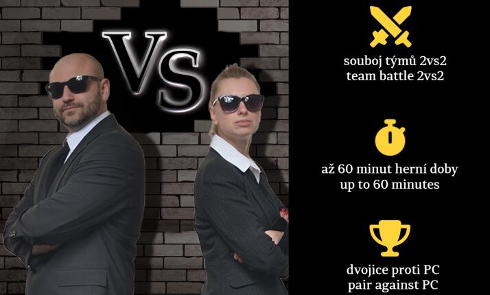 Zkušeným hráčům nabízíme i možnost hrát ve formátech 1 vs 1 nebo 2 vs 1. A pokud chcete ještě víc adrenalinu, aktivujte si tzv. stress mód, který v reálném čase ukazuje, který tým je momentálně napřed.