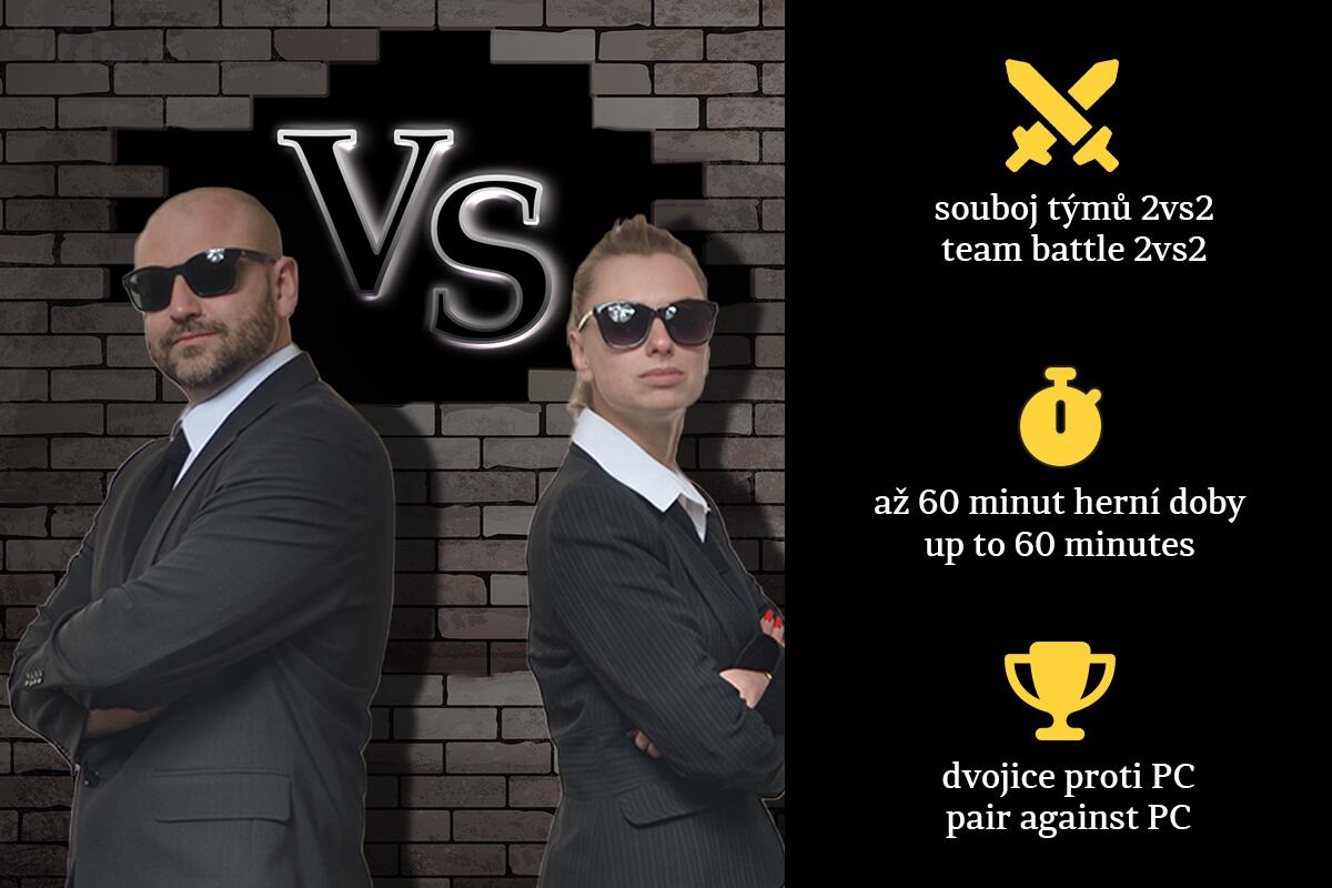 Dvě naprosto identické místnosti, dva týmy, 60 minut napětí a jen jeden vítěz. Přijďte si změřit síly a získat vítězný pohár. Kdo bude rychlejší, chytřejší a lépe sehraný?