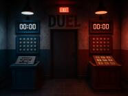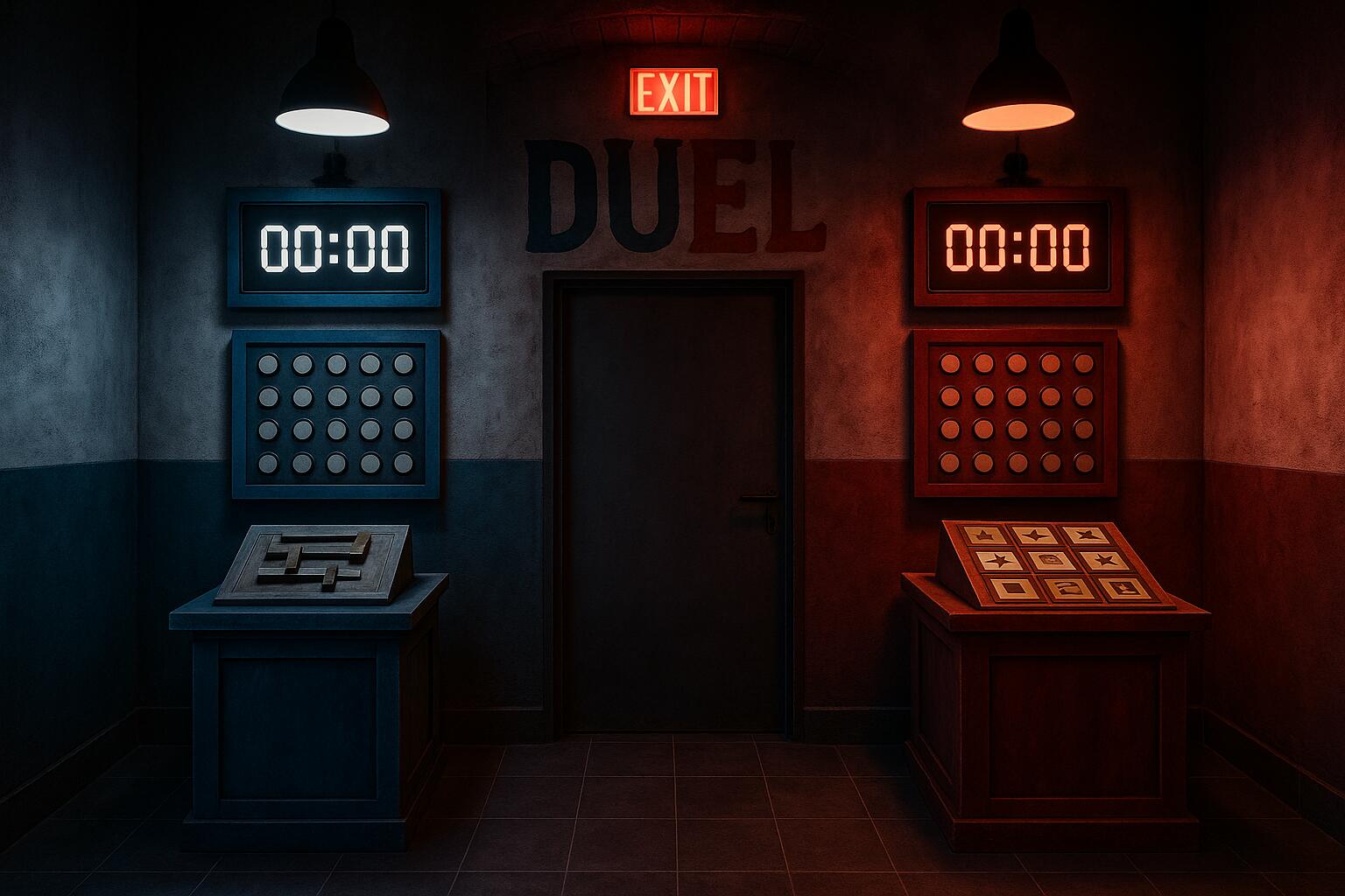 Duel je jedinečný herní formát, ve kterém se dva týmy utkají v naprosto shodných únikových místnostech. Každý tým má 60 minut na to, aby vyřešil všechny úkoly a dostal se ven dříve než soupeř. Vyhrává ten rychlejší – a čeká ho zasloužená sláva i vítězný pohár.