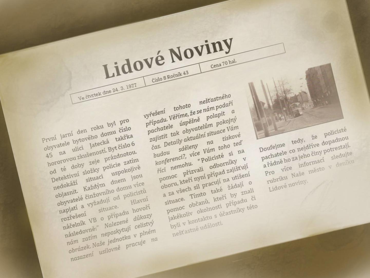 Vy, jako detektivní tým, máte za úkol odhalit, kdo má na svědomí neštěstí na ulici Jatecká v bytě č. 6.
