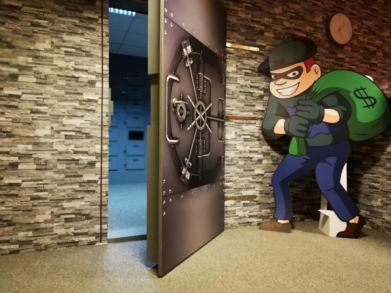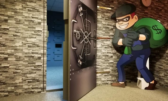 Dáte dohromady partičku zlodějů a pokusíte se vykrást náš bankovní trezor? Kolik otevřete schránek a najdete zlatých cihel? Trezor se za Vámi zavřel, a vy nemůžete ven? Stihnete se s lupem dostat ven za 60 minut, než dorazí zásahovka?
