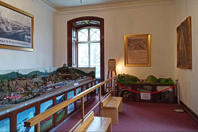V zámeckých interiérech ve Studénce se štukovou výzdobou se nachází unikátní muzeum železniční dopravy. Návštěvníci si mohou prohlédnout nejrůznější exponáty související s rozšiřováním železnic na území České republiky a zajímavou expozici o historii místní továrny na vagóny, včetně zmenšených kopií vagónů a lokomotiv. Je zde i funkční rozměrná dráha se dvěma okruhy kolejiště.