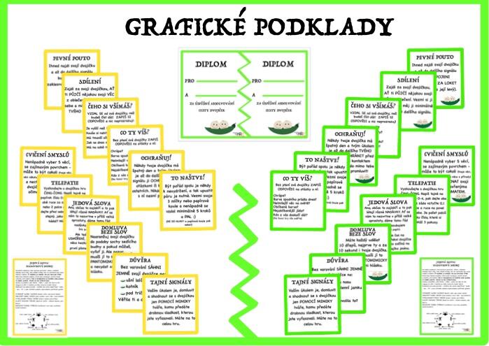 Návod ke hře, 12+12 kartiček s úkoly a aktivitami, 1 doplňkový list a diplom.