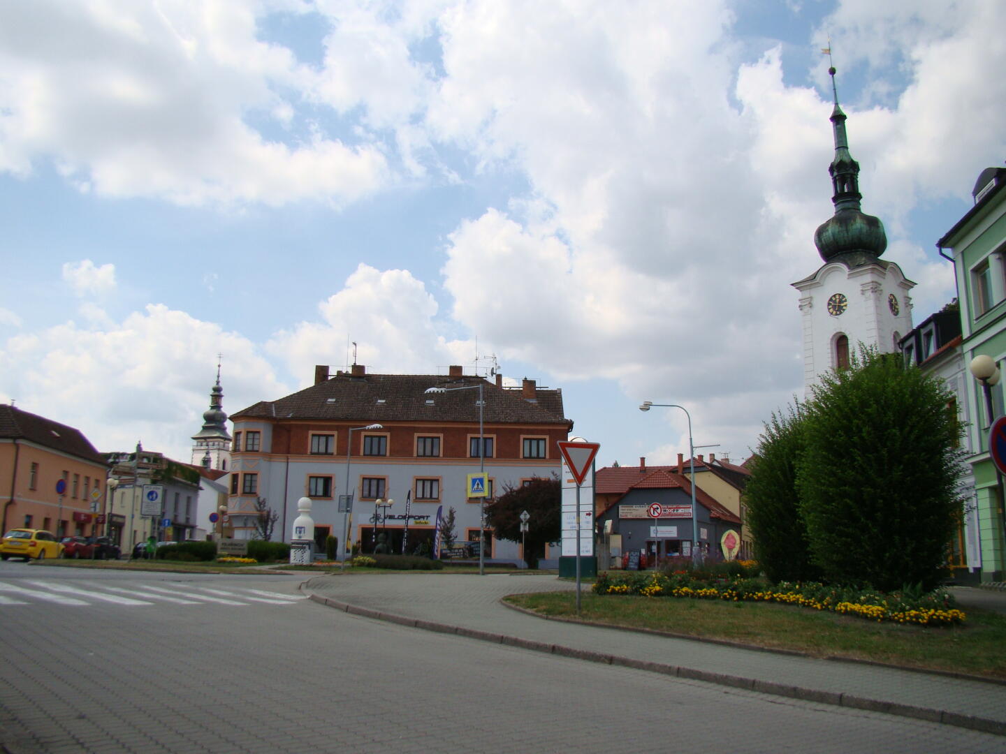 Start hry je u kašny na náměstí.