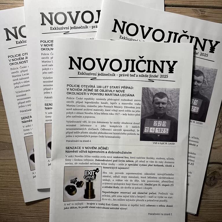 Venkovní šifrovací hra vás zavede do ulic historického centra Nového Jičína, kde se stanete pátrači po stopách skutečného zločince – Leciána, nechvalně proslulého lupiče a vraha z počátku 20. let. Hra probíhá formou tematického výtisku novin Novojičin, který obdržíte při startu.