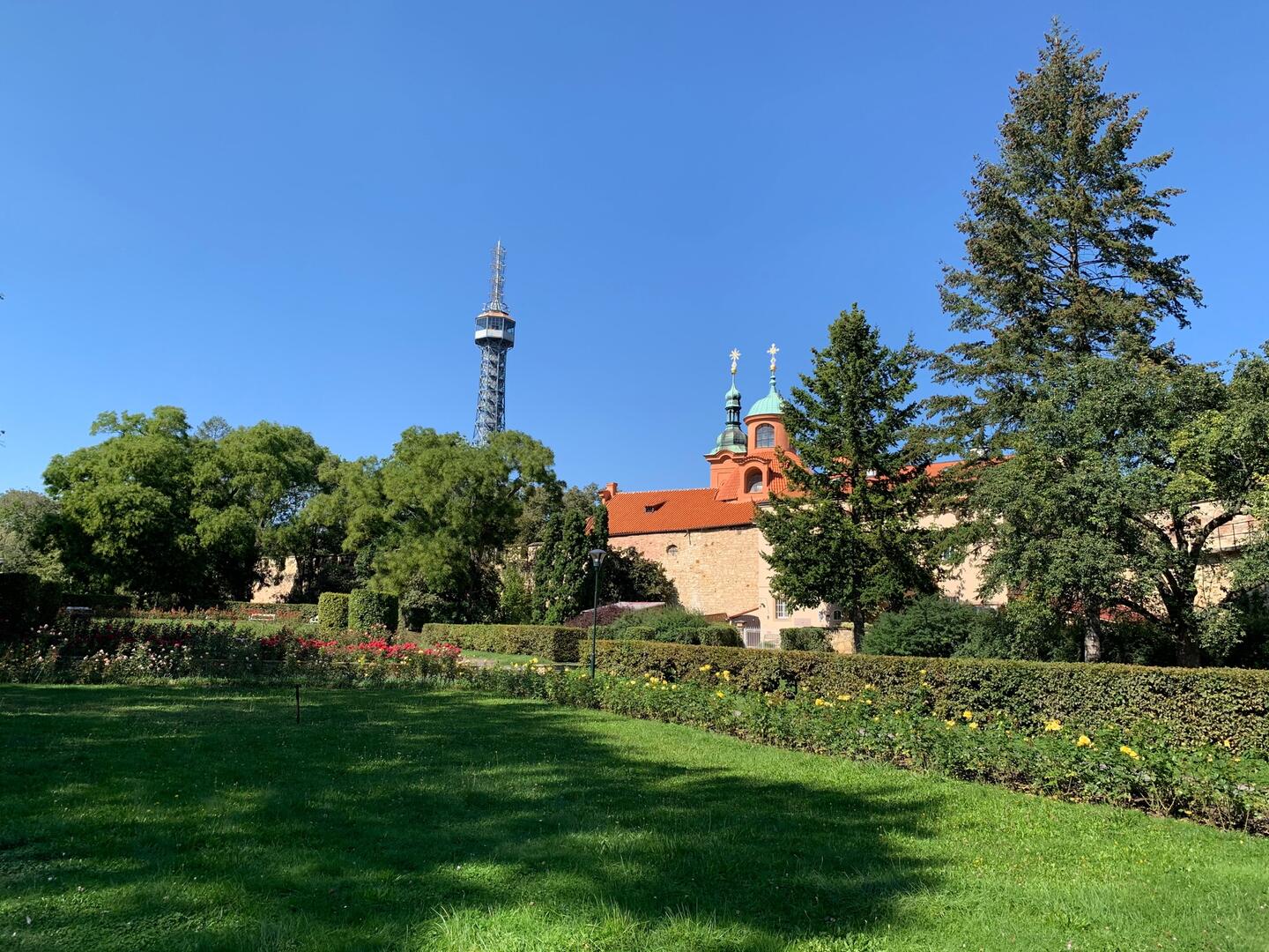Hra začíná u sousoší Polibek u horní stanice lanovky na Petřín.