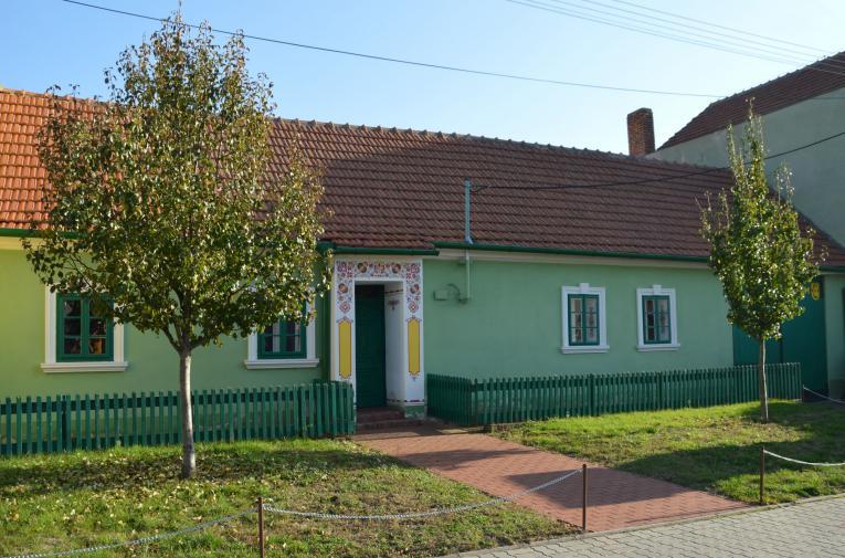 Vchod do muzea tvoří malované žudro. Vchází se do předsíně, kde je umístěna část starého nábytku – 2 skříně a šuplíkový „kchosn“, ve kterém jsou uloženy části krojového oblečení pro všední i sváteční den, na „kchosnu“ jsou staré devocionálie (církevní předměty).