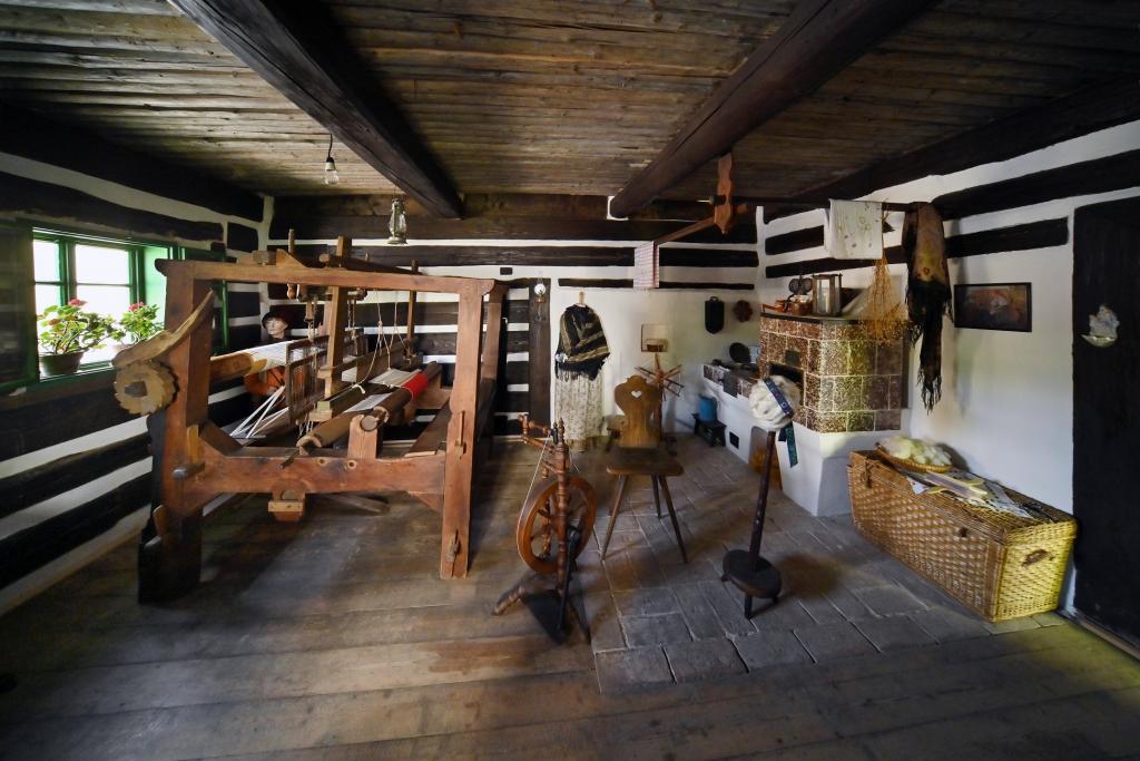 V expozici Zpracování lnu a vlny se dozvíte vše o prastarém řemesle tkalcovství. Můžete si i vyzkoušet předení na kolovrátku.