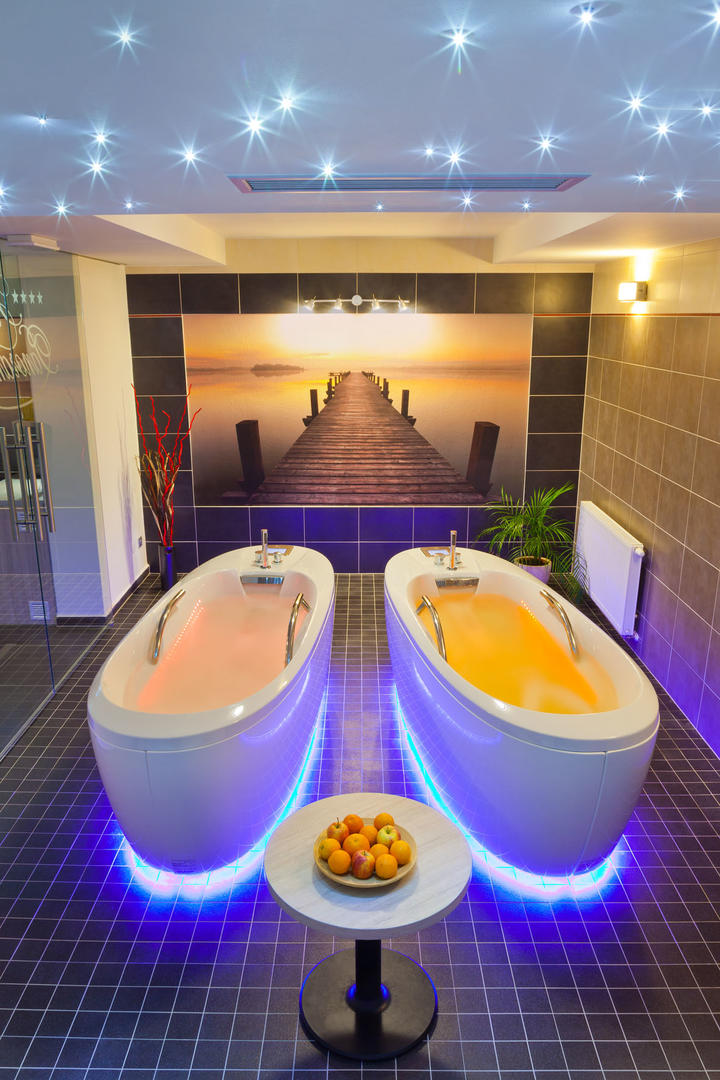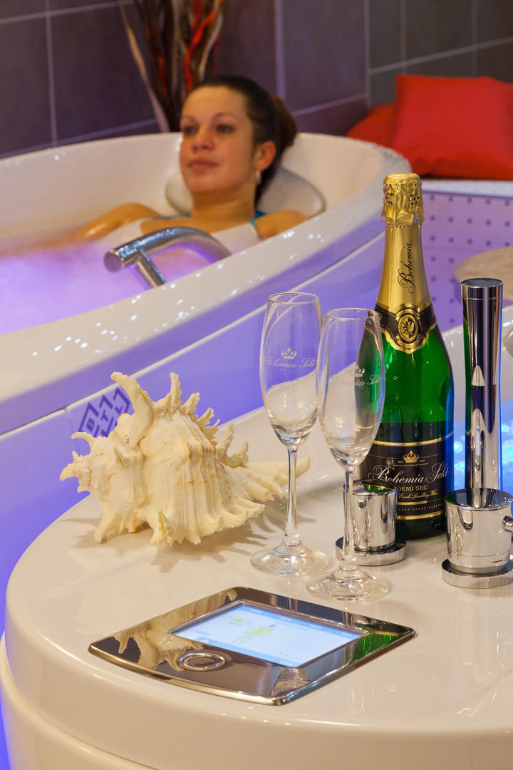 Zajímavostí Wellnessu je kromě jiného hvězdná obloha ze světýlek na stropě v relaxační části, kde si můžete vyzkoušet, jaká souhvězdí poznáte. K tomu si můžete pustit třeba i vaši vlastní hudbu, kterou si přinesete.