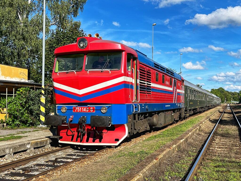 Vlak bude veden legendární lokomotivou Bardotka, která poveze rychlíkové vozy. Na palubě vás čeká oblíbený výčep a malé občerstvení, abyste si jízdu mohli pořádně užít.