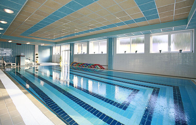 Bazén s protiproudy 12,7 x 5,9 m - jeden z největších v Luhačovicích (hloubka 1,3 m).