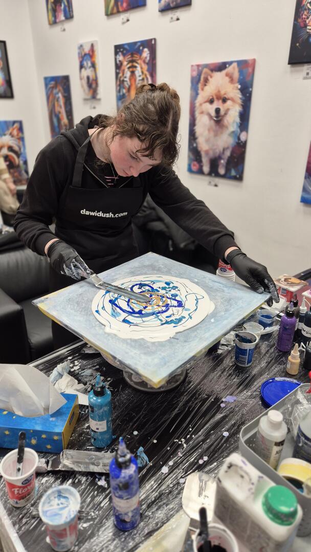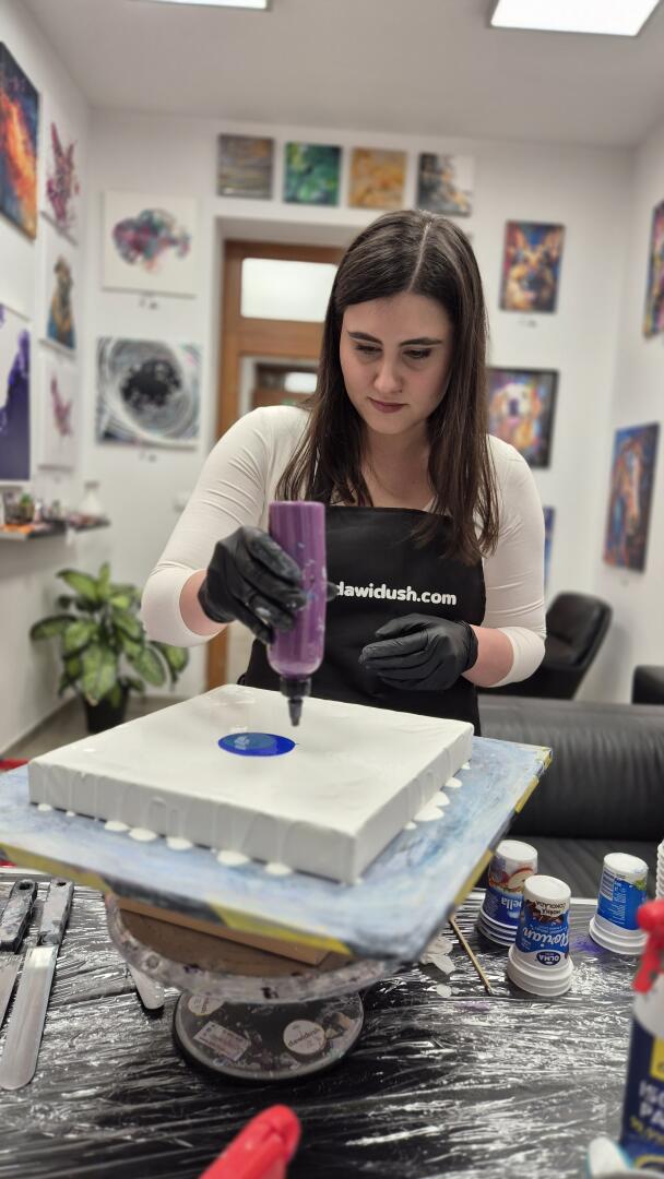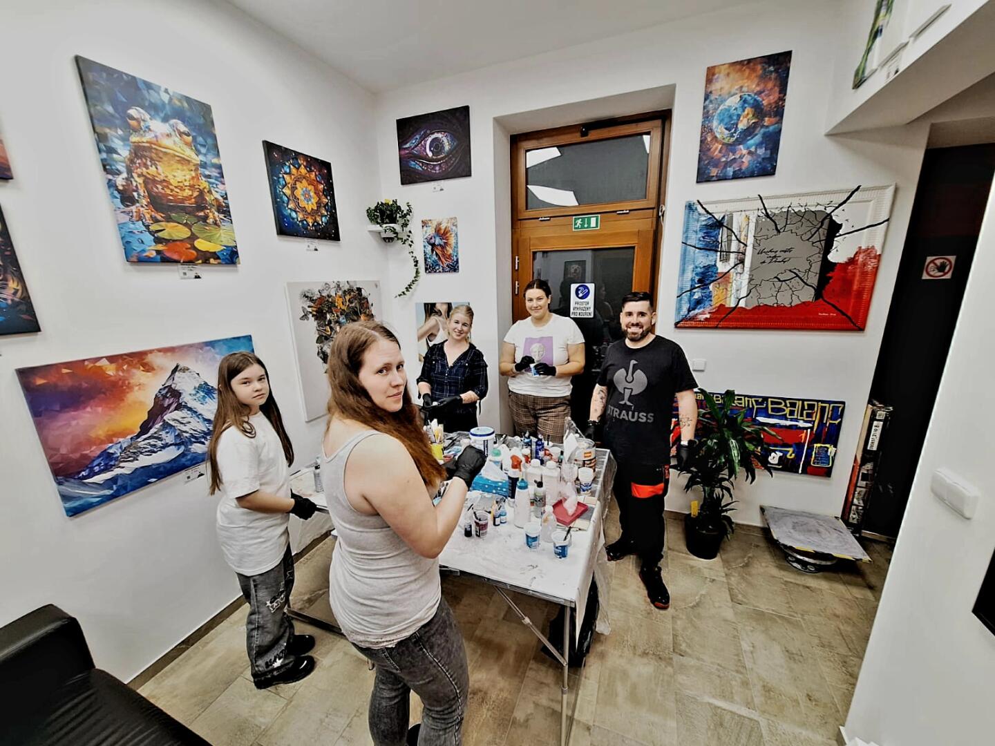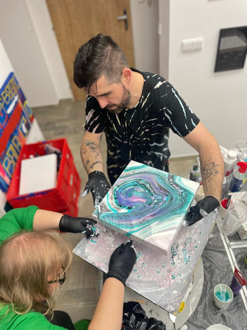 Zažijte jedinečný workshop zážitkového malování pod vedením Dávida Balážiho, známého jako Dawidush. Vyzkoušíte si techniku Shelee Art – styl abstraktního lití barev, který pochází z Austrálie a do Česka ho přináší právě Dawidush. Typická je pro svou bohatou škálu barev, fascinující struktury a takzvané buňky, které vznikají přímo před očima.