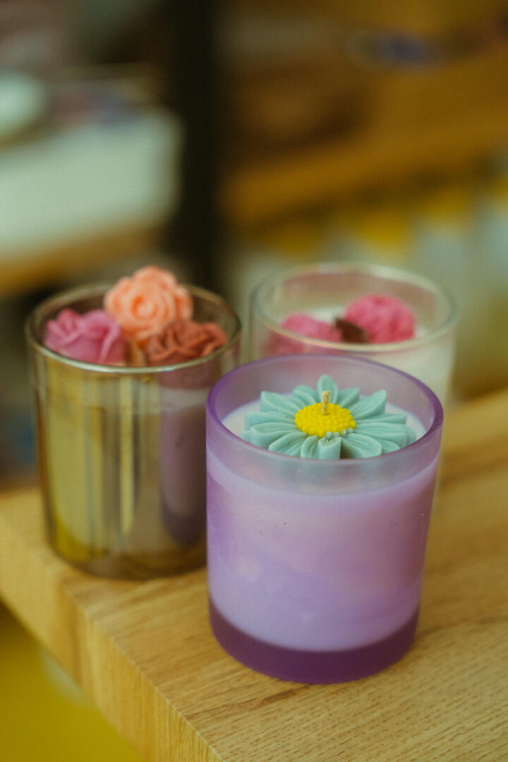 Vyrob si vlastní svíčku ze sójového vosku! Podle sezóny nabízíme speciální motivy a vůně – v létě například letní květinové svíčky, na podzim hřejivé dýňové tóny, o Vánocích sváteční vonné svíčky.