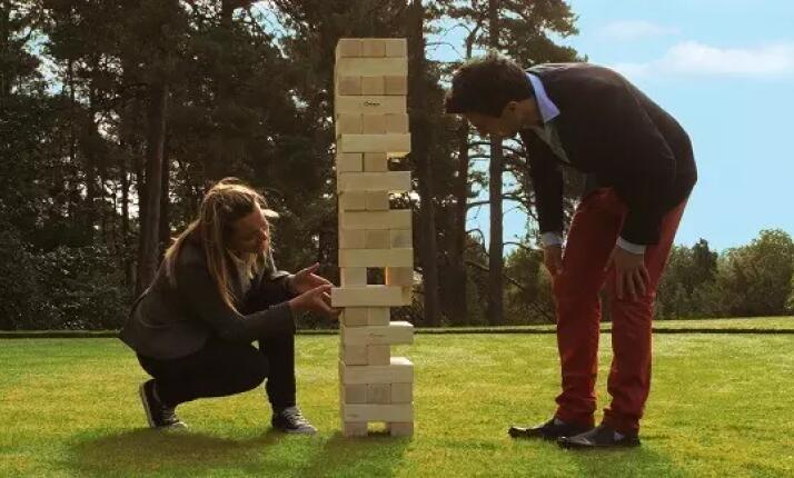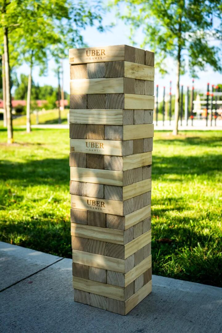 Určitě už znáte menší verzi této hry, kdy z hranolků postavíte věž na stole a postupně je vytahujete, dokud se věž nezhroutí.