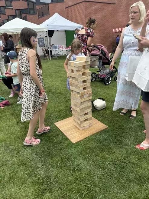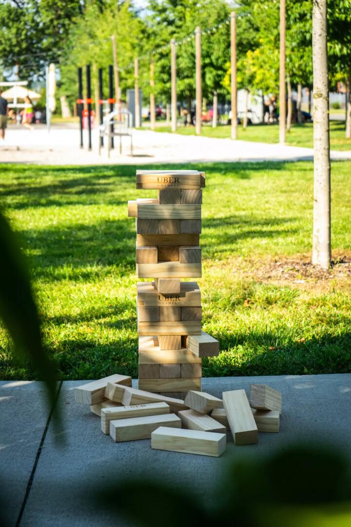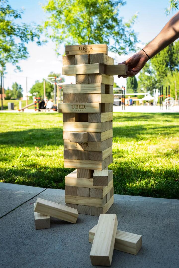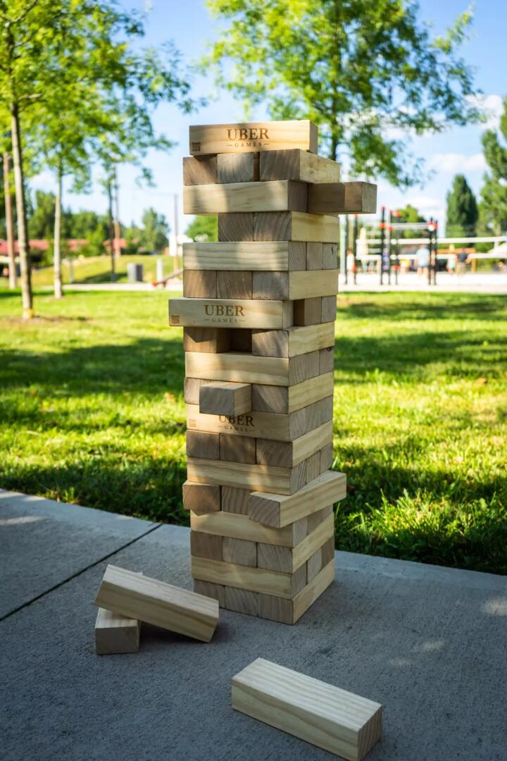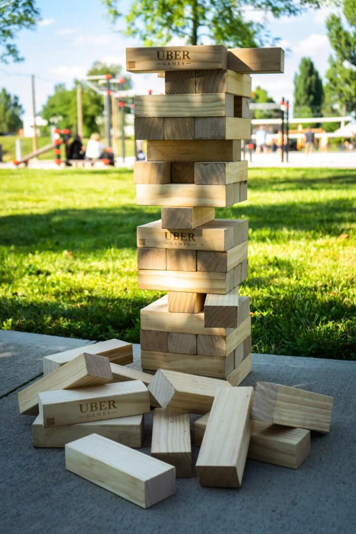 Svatby: Potřebujete zabavit svatebčany mezi jednotlivými částmi programu? Postavte jim venkovní herní stanoviště s maxi věží, která určitě přitáhne jejich pozornost.