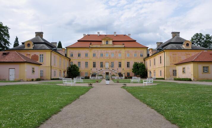 Barokní zámek Krásný Dvůr byl postaven na místě gotické tvrze za Františka Josefa Černína v letech 1720 až 1724. Na zámek navazuje unikátní krajinářský park, nejstarší představitel tohoto typu parku v Čechách. Vybudován byl v letech 1783 až 1793 za Jana Rudolfa Černína. Park má rozlohu téměř 100 ha a nachází se v něm mnoho romantických staveb, například Novogotický templ, Panův templ, Gloriet, Obelisk či Lusthaus.