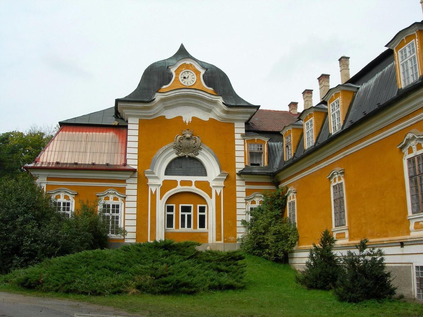 Barokní zámek vznikl na místě gotické tvrze a v polovině 18. století byl rozšířený v duchu pozdního baroka. Počátkem 20. století proběhly secesní úpravy a po požáru roku 1973 dostavba v duchu moderního baroka.