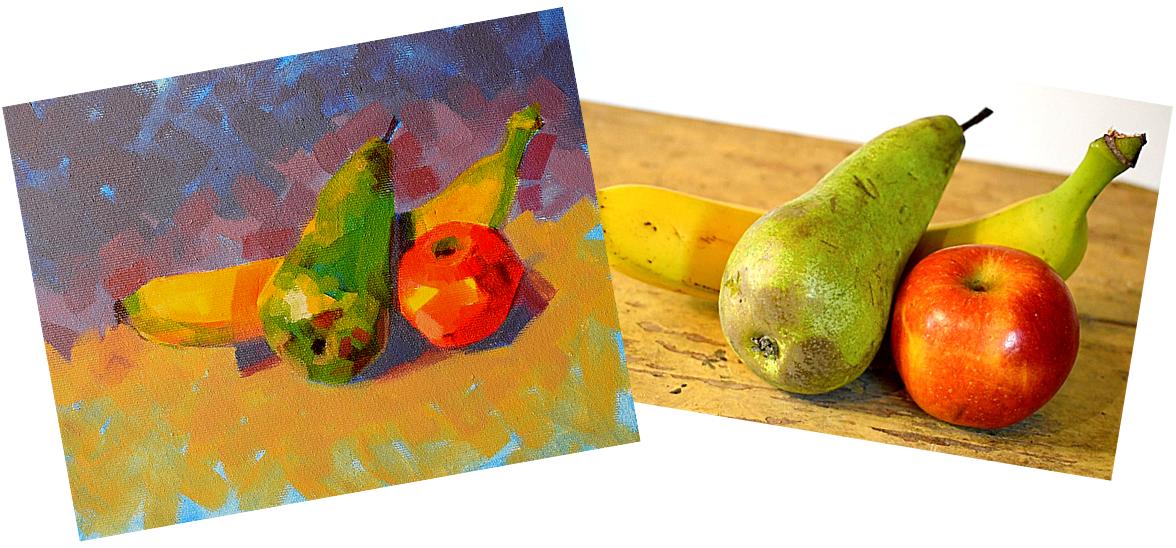 Na jednoduchém zátiší, které si snadno vytvoříte i doma se naučíme pracovat s primárními (základními) barvami, ze kterých budeme postupně míchat další barvy a odstíny.