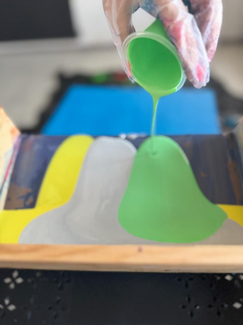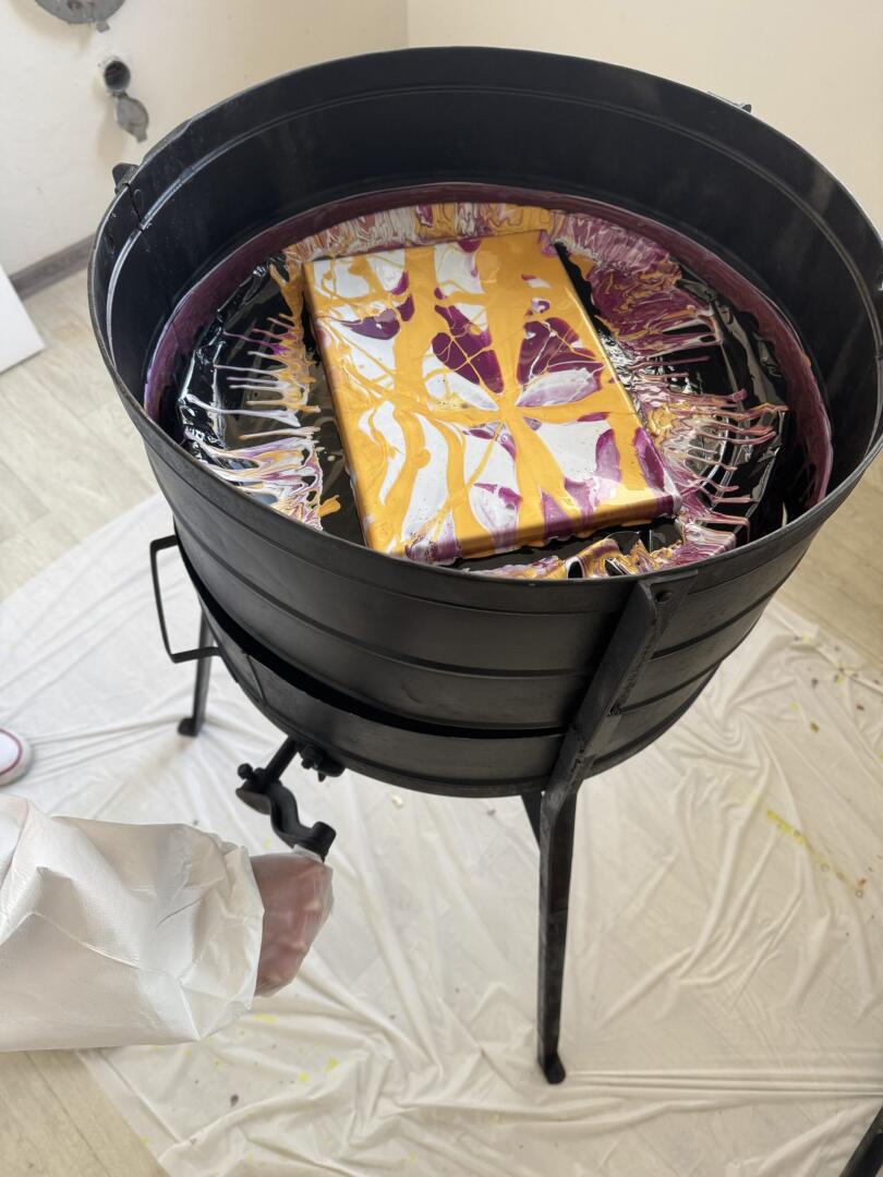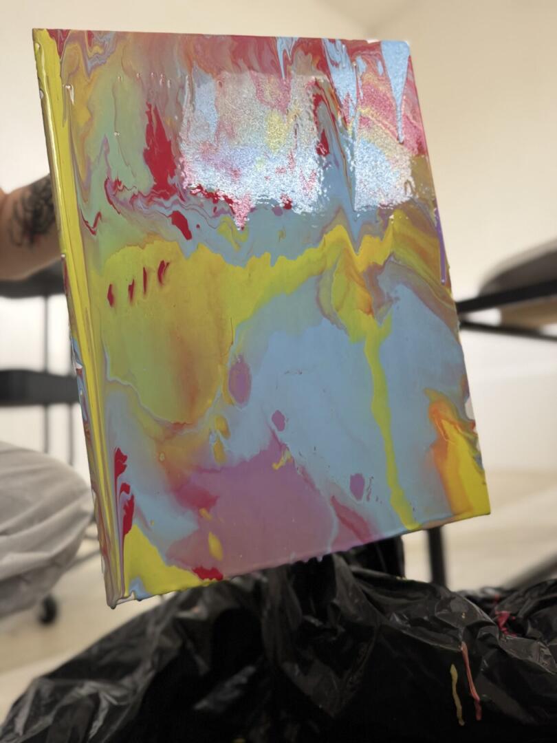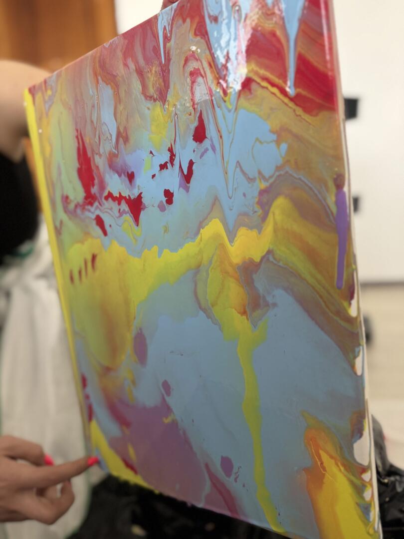 Pouring – slévání barev - technika Pouring je hravá, nečekaná a dokonale relaxační. Stačí nalít barvy, naklonit plátno a sledovat, jak se barvy prolínají a vytvářejí jedinečné vzory. Každý pohyb je originál, každý výsledek je unikátní!