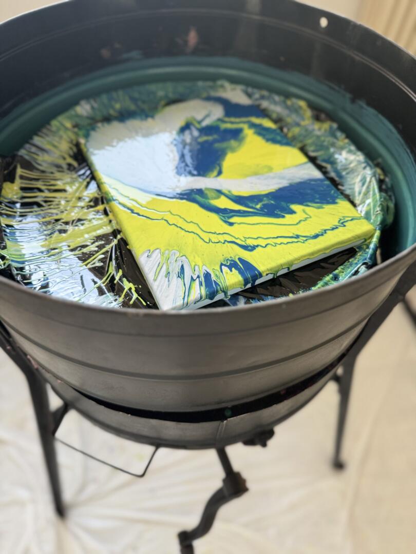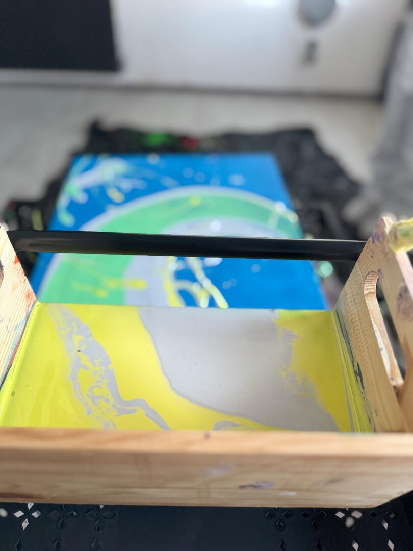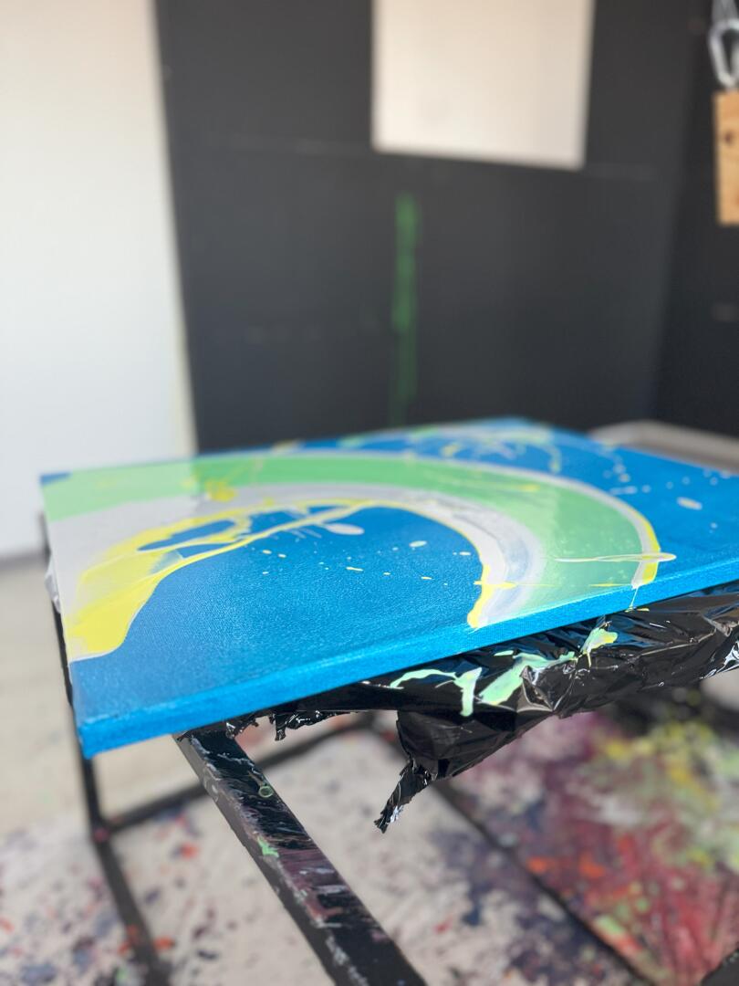 Rotační stůl s houpačkou - chceš vidět, jak barvy ožívají a tvoří dechberoucí vzory úplně samy? Stačí nalít barvy do houpačky, roztočit plátno na otočném stole a nechat pohyb převzít kontrolu. Odstředivá síla a gravitace vytvoří show plnou dynamiky, kde se barvy mísí, prolévají a tvoří nádherné obrazce.